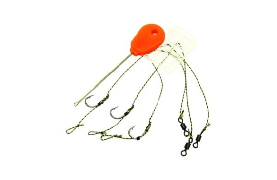Zestaw 3 haków z przypononem. Dodatkowo w zestawie znajduje się igla do kulek proteiowych oraz stopery na włos.